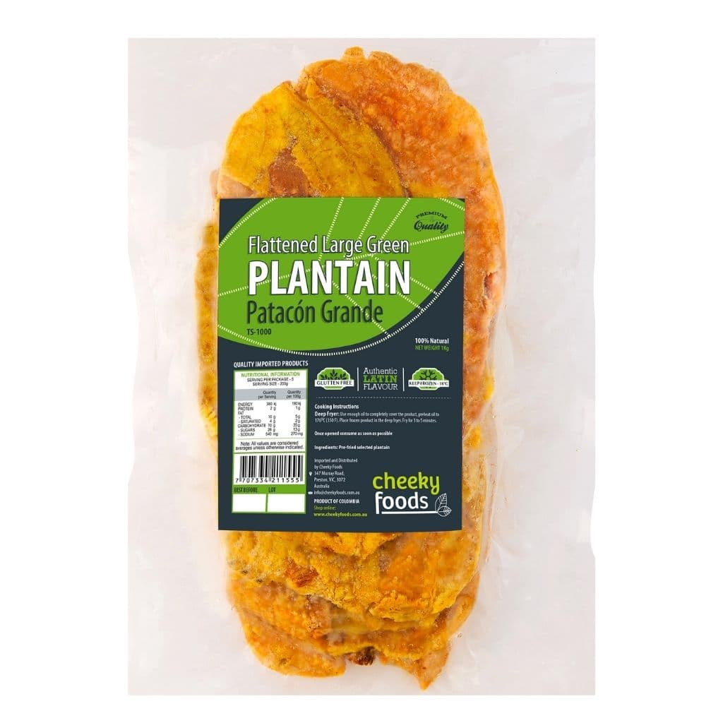 FLATTENED LARGE GREEN PLANTAIN CHEEKY FOODS 1KG/ PATACON GRANDE