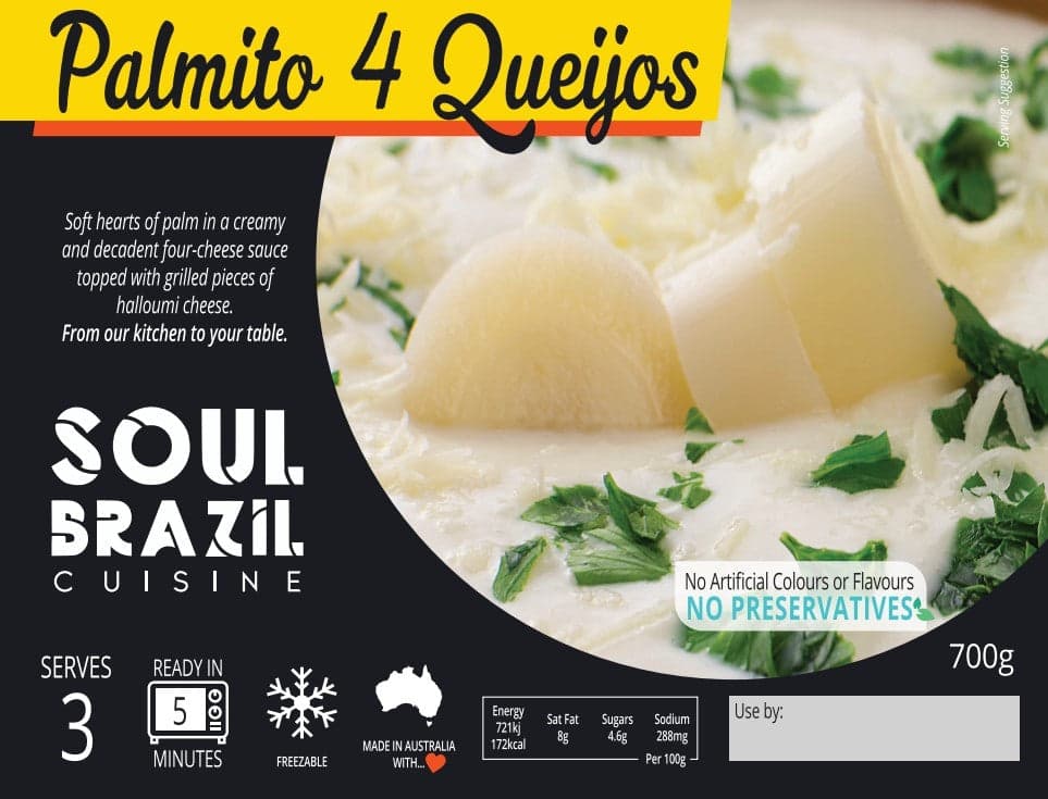 PALMITOS 4 QUEIJOS 700GR SOUL BRAZIL/ SOFT HEARTS OF PALM IN CREAMY