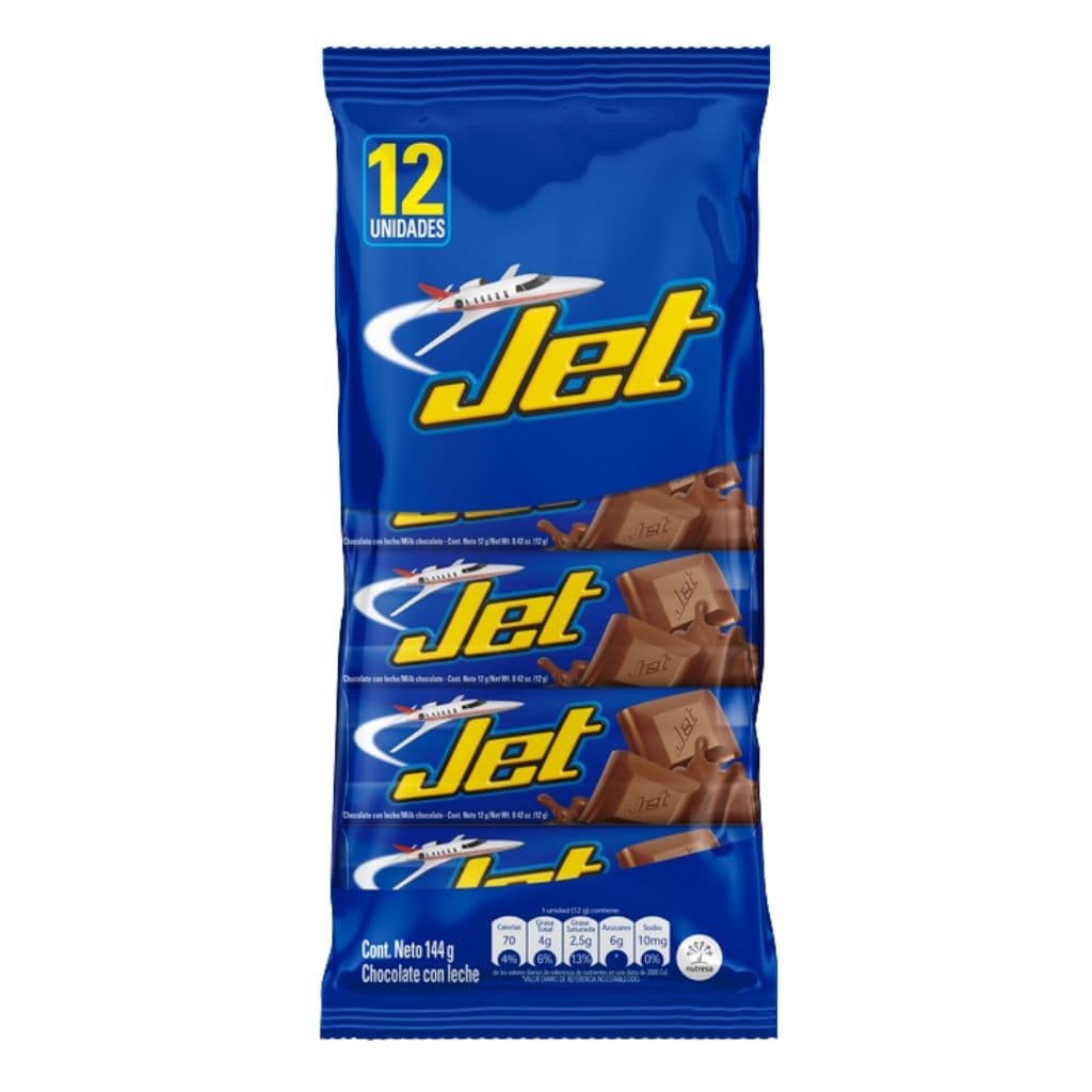 JET MILK CHOCOLATE BAR PACK OF 12 144GR/ CHOCOLATINA JET